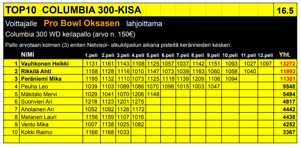 Finaalin tulokset